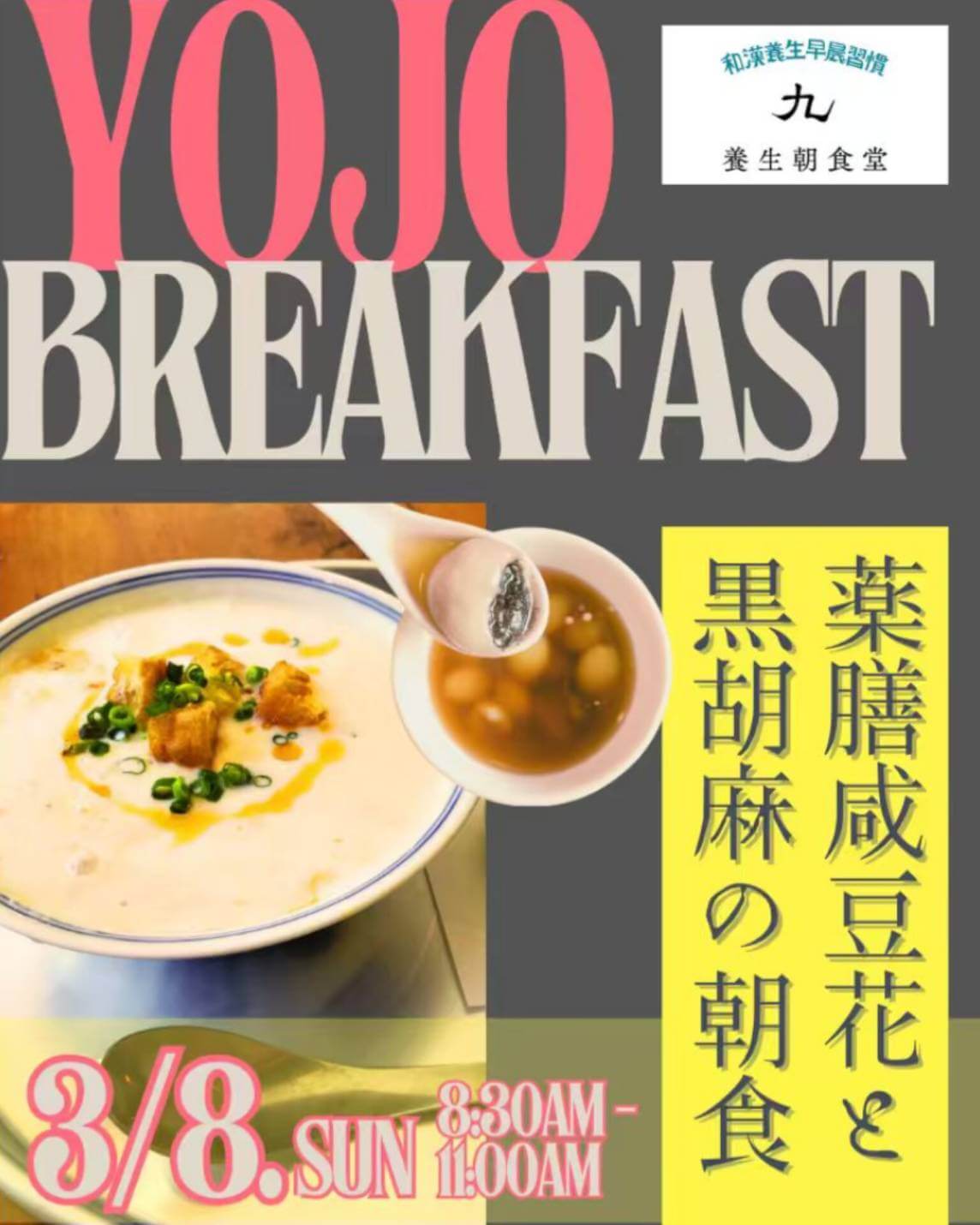 3月8日の朝食 「薬膳咸豆花と黒胡麻朝食」